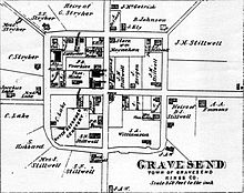 The derivation of the name is unclear. Some speculate that it was named after the English seaport of Gravesend, Kent.[1] An alternative explanation suggests that it was named by Willem Kieft for the Dutch settlement of “‘s- Gravesande”, which means “Count’s Beach” or “Count’s Sand”.[2] There is also a town in the Netherlands called ‘s-Gravenzande.